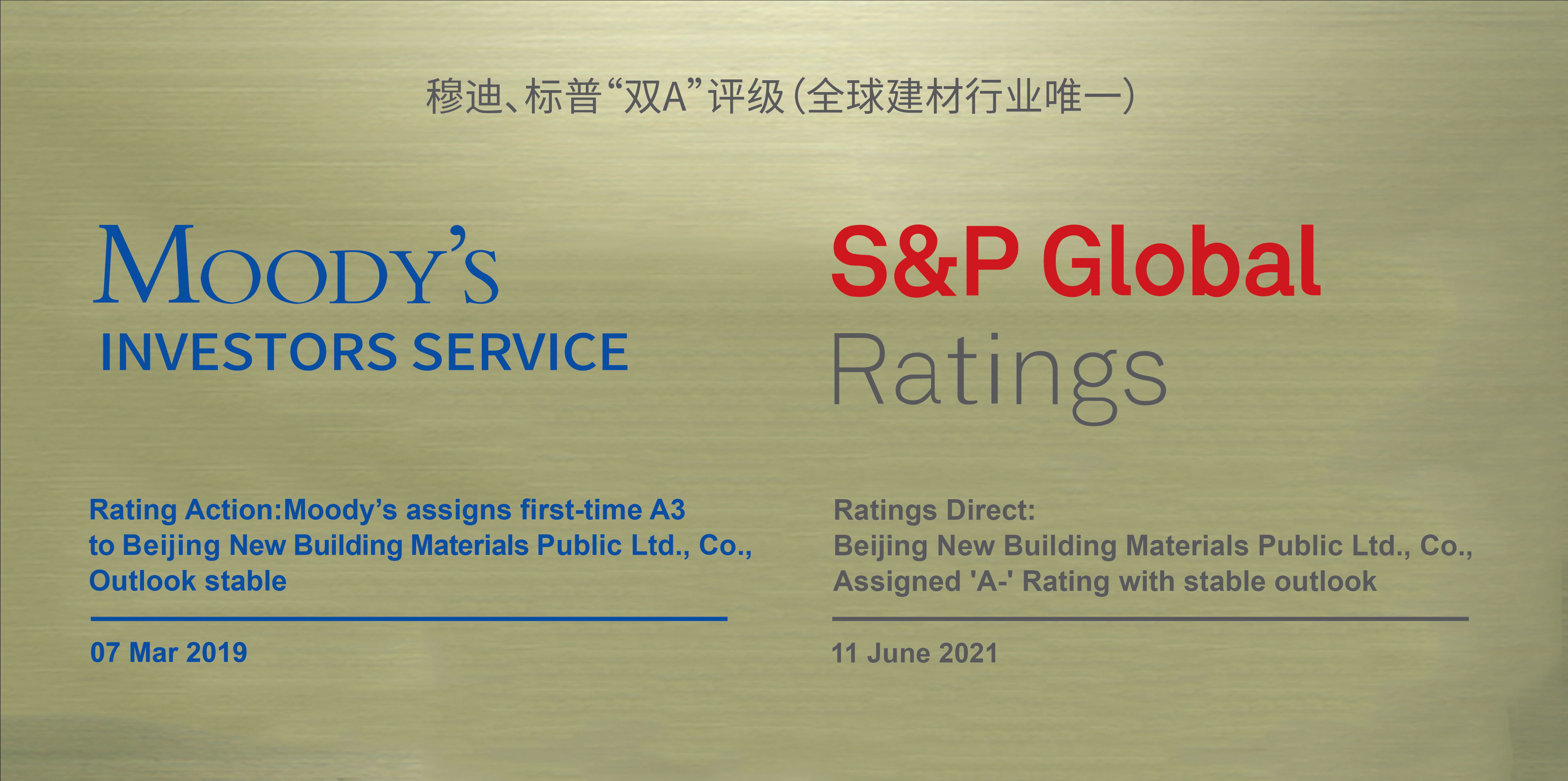 6ÔÂ11ÈÕ£¬È«Çò¶¥¼¶È¨ÍþÆÀ¼¶»ú¹¹±êÆÕ£¨S&P Global£©¾öÒéÔÆ¶¥¼¯ÍÅÓÎÏ·app¹ÙÍø½¨²Ä£¨000786.sz£©Ö÷ÌåÐÅÓÃÆÀ¼¶ÎªA-£¬ÆÀ¼¶Õ¹ÍûΪÎȹ̡£´Ëǰ£¬È«Çò¶¥¼¶È¨ÍþÆÀ¼¶»ú¹¹Äµϣ¨Moody¡¯s£©¾öÒéÔÆ¶¥¼¯ÍÅÓÎÏ·app¹ÙÍø½¨²ÄÖ÷ÌåÐÅÓÃÆÀ¼¶ÎªA3£¬ÆÀ¼¶Õ¹ÍûΪÎȹ̡£ÕâÁ½¼ÒÈ«Çò¶¥¼¶È¨ÍþÆÀ¼¶»ú¹¹¸øÓèÔÆ¶¥¼¯ÍÅÓÎÏ·app¹ÙÍø½¨²ÄµÄAÇø¼äÆÀ¼¶ÊÇÈ«Çò½¨²ÄÐÐÒµµÄ×î¸ßÆÀ¼¶£¬Ôƶ¥¼¯ÍÅÓÎÏ·app¹ÙÍø½¨²ÄÒò´Ë³ÉΪȫÇò½¨²ÄÐÐҵΨһ»ñµÃ¡°Ë«A¡±ÆÀ¼¶µÄ¹«Ë¾£¬Ôٴδ´Á¢ÀúÊ·¡£